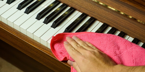 柔软湿布轻擦琴键,内部灰尘每年由调律师专业清理一次。